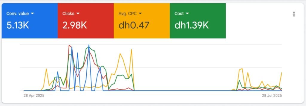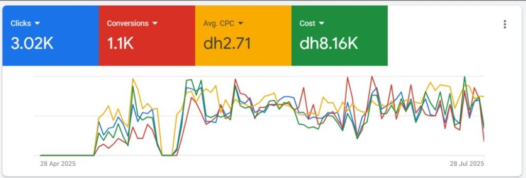 Our Google Ads boosted traffic and sales steadily. The upward graph shows more clicks, conversions, and strong ROI for this fashion brand.
